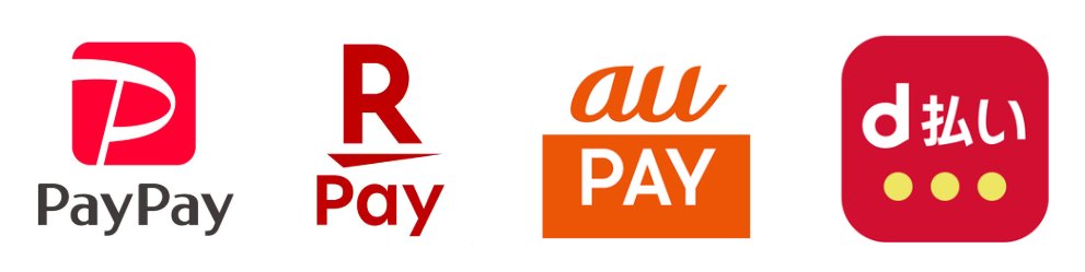 各種クレジットカード、電子マネー払い、スマホ・バーコード決済に対応