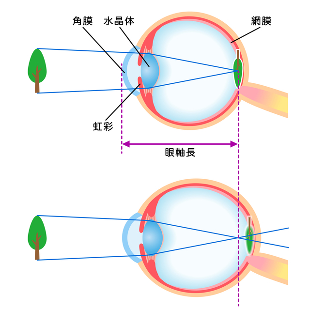 眼軸長(がんじくちょう)が伸びる